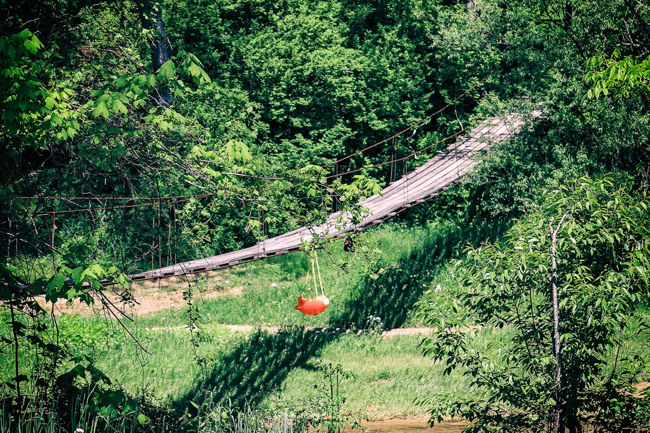 Some things are a little strange, like this crazy bridge over Yellow Creek linking a home nestled in the woods with a road (probably where their mailbox is).  You probably couldn’t get me on that bridge.  But note what is actually hanging below the bridge—a Haba aircraft swing (or some other brand) for toddlers.  Okay, how did this end up hanging off the bridge and why is it there?  Is it there as a bit of ballast, to hold the bridge down (maybe there are some rocks in it)?  Surely they do not actually but babies in that and let them hang off the bridge?  I’ve got my eyes on you, bridge.