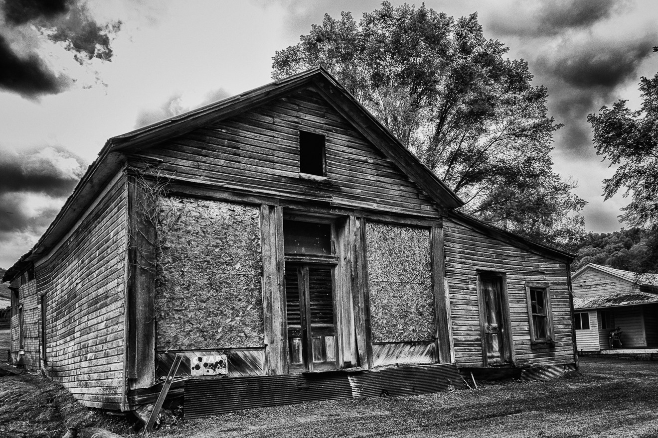It slowly began to dawn on me that I had encountered a ghost town—or, more accurately, a ghost hamlet.  I drove along, taking photographs of some of these buildings (below), with a sense approaching that of awe.  Was this an old coal town?  Had something happened here?  Did this place have a name?  It was really kind of spooky seeing these buildings.