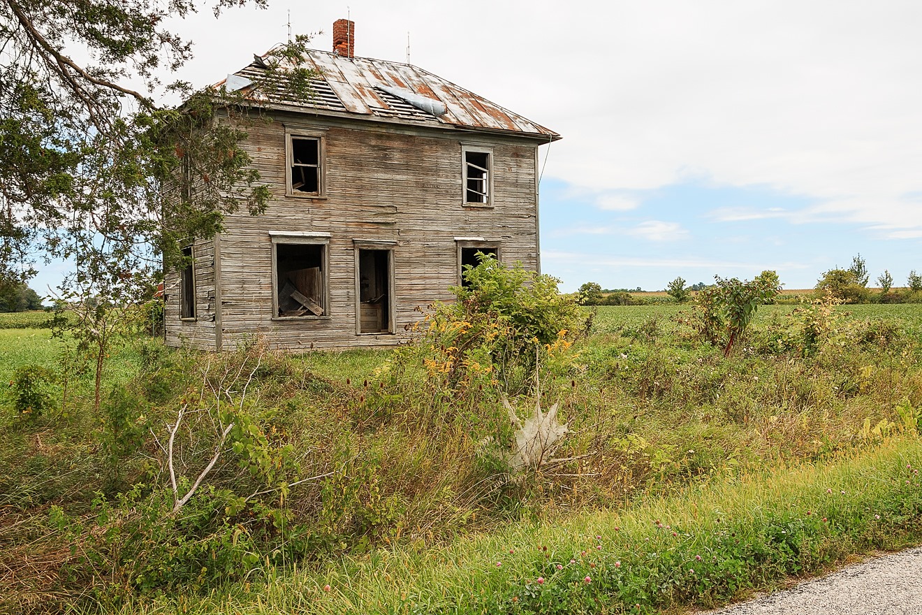 In 2014, I made many trips to Chicago for work and, when possible, tried to bring along a camera in order to take photographs during the Ohio portion of the trip.  In early September 2014, I made one such trip.  Time pressures allowed me little time for back-roads journeying on the trip, but I did manage to take a precious few shots, most centered around an interesting abandoned homestead.   I present them here, without any thematic or pseudo-philosophic commentary.  Count your blessings.