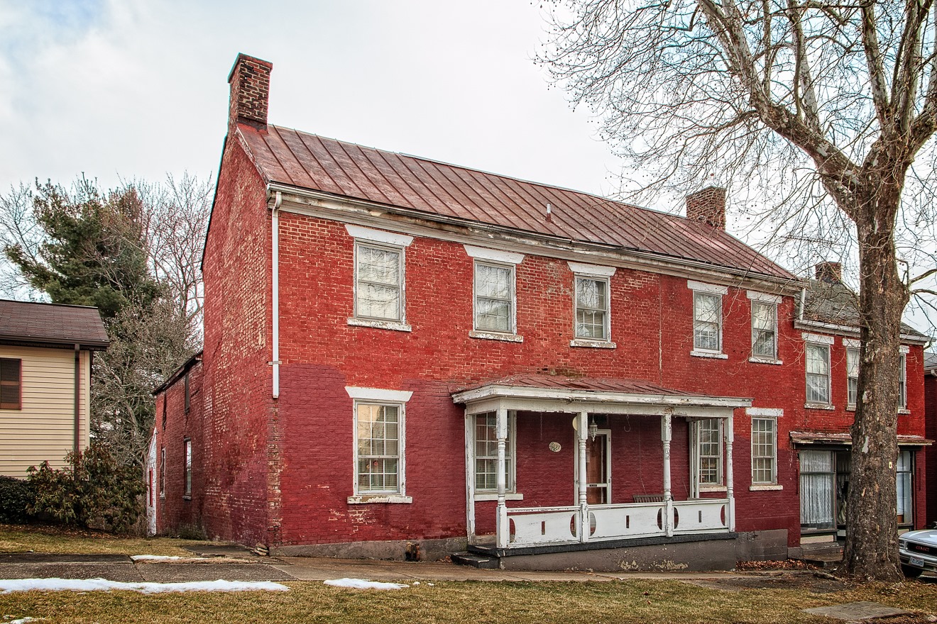 Here’s one of the first of these ancient houses I encountered.  You can see how much of the brick-work has had to be re-done over the years.  A little research revealed this to be the Lemuel Jones House, built around 1840 by Samuel Jones for his son Lemuel.  The building directly to its left (your right) was a little shop building built by Samuel Jones; it has been a blacksmith shop, a shoe shop, and a bank, at different times.