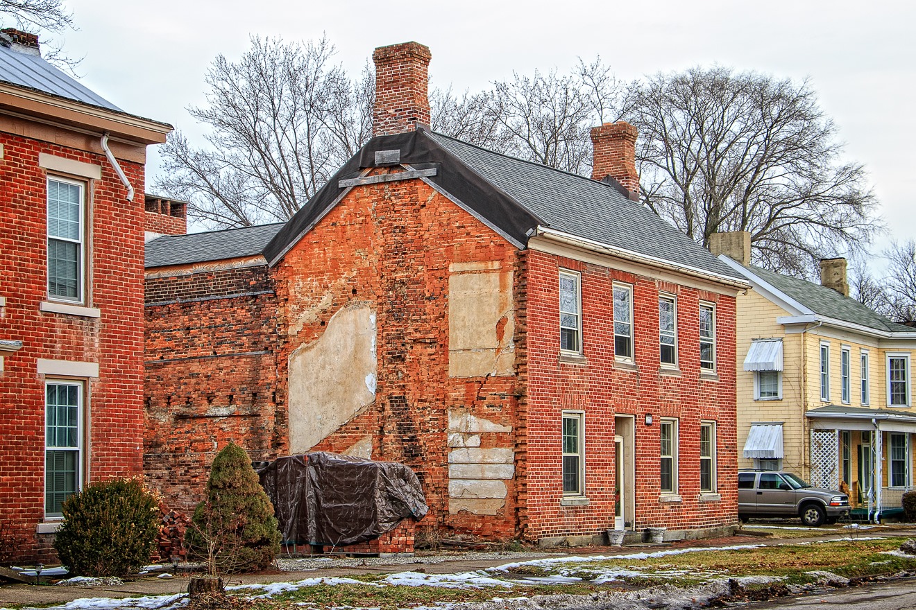 Heading northeast from Martin’s Ferry brought me soon enough to the aptly named hamlet of Mt. Pleasant (population 478, salute!).  It doesn’t look so pleasant from this particular shot but bear with me.  As I drove through the tiny place I soon realized that this little community was full of some very old houses.  Indeed, the places was founded in 1803, making it a pretty early Ohio settlement.  What is amazing, though, is how many of the very old houses from the early 19th century have survived the past couple of centuries and are still around today.  According to the National Park Service, one reason that so many old houses survived is that when the railroads came through Ohio in the mid-1800s, they bypassed Mt. Pleasant, making it a sort of eternal backwater.