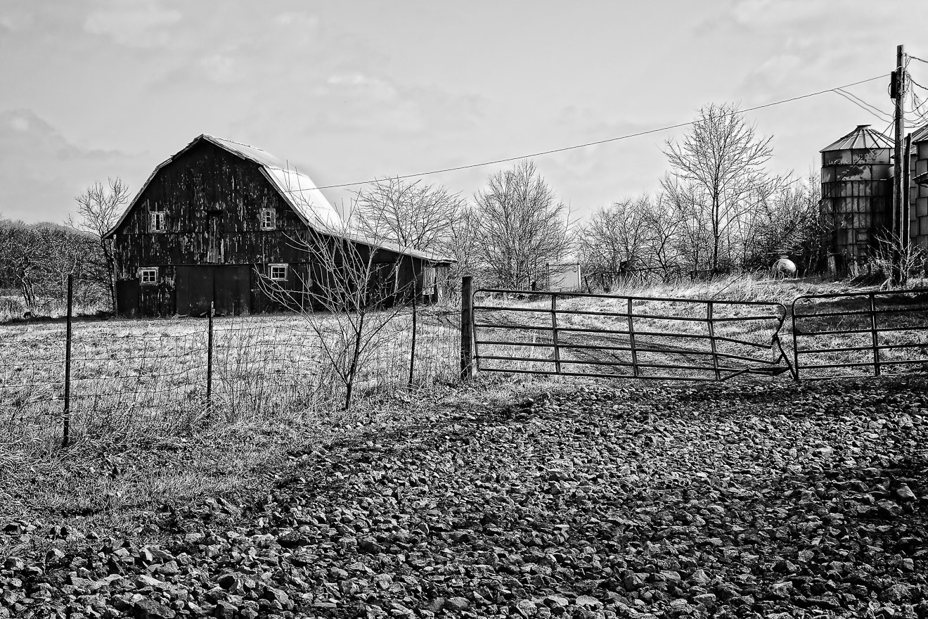 I noticed a very large barn on a farm about 20 miles or sosouthwest of Columbus and nestled under dark shade of the barn’s awning was this old truck. I call these trucks “teeth trucks” because the style of front grill from trucks of this era make them look like angry faces (there are some great examples of “teeth trucks” in the extremely good all-but-forgotten film Sorcerer, 1977, one of my favorite films). I seem to recall I had to use some HDR processing to make the truck more visible in the dark shade. I would love to have a truck like this, though what I would do with it is another thing entirely.