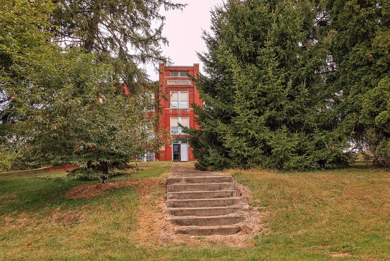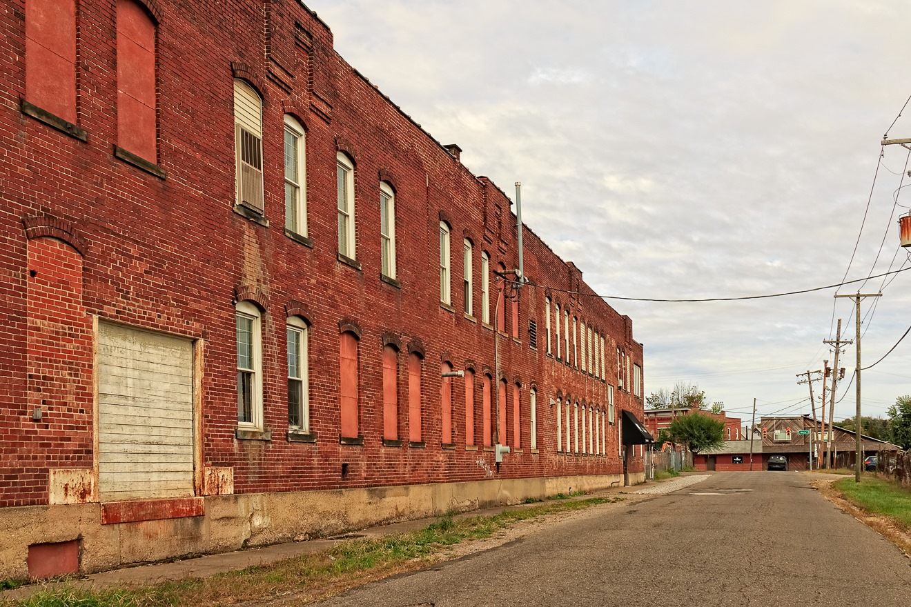 On this 50th excursion—which I think I will render here in three parts—I headed east from Columbus to the nearby town of Newark, then headed generally northeast all the way to East Liverpool and the Ohio River. After taking some photographs in East Liberpool, I headed south and did the same for Steubenville, before packing it in and heading home. Just before reaching Newark, I took this photograph of an old school, the Union Township Central School, which was built in 1917. Students have long since ceased passing through its doors, but someone is still mowing the lawn.