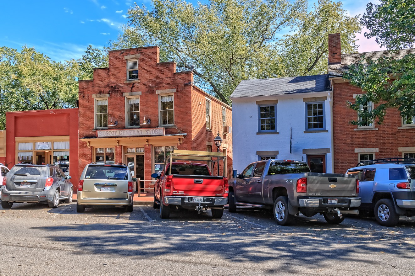 As I neared Coshocton, Ohio, a town I have been in many times, I came across something I somehow missed all those earlier times, something called “Historical Roscoe Village,” which is a “restored” hamlet that used to sit along the Ohio and Erie Canal. It largely faded away as railroads replaced canals but in the 1960s folks in Coshocton got the idea of restoring some of the old buildings in the area that still stood. Essentially it is now a local tourist destination, with a few shops, some activities and tours, and a small museum. Kids can watch “living history” exhibits such as a blacksmith shop, a doctor’s office, and a school.