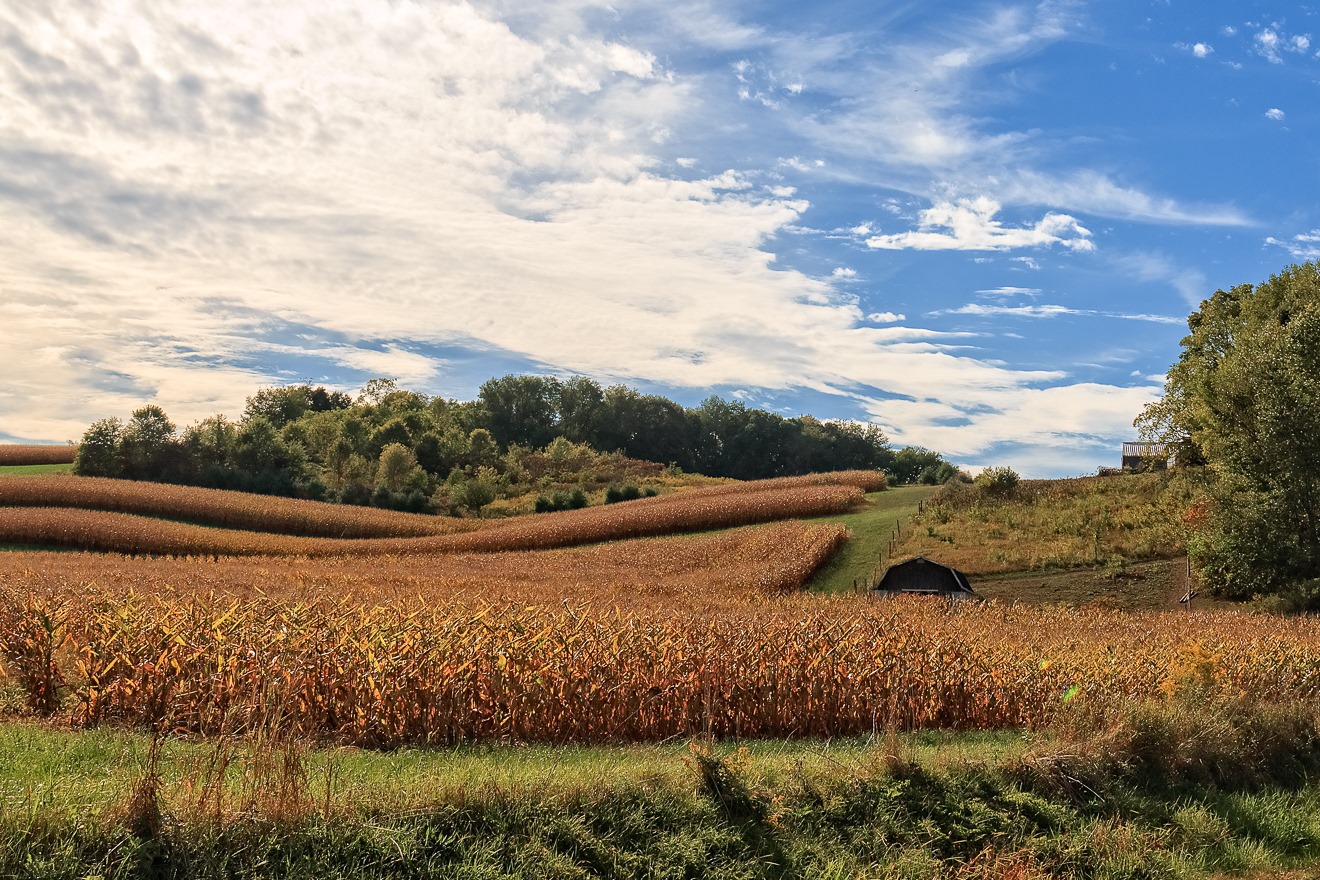 Here we see a scene that is really so emblematic of late summer in Ohio. The corn is brown, the trees still green.