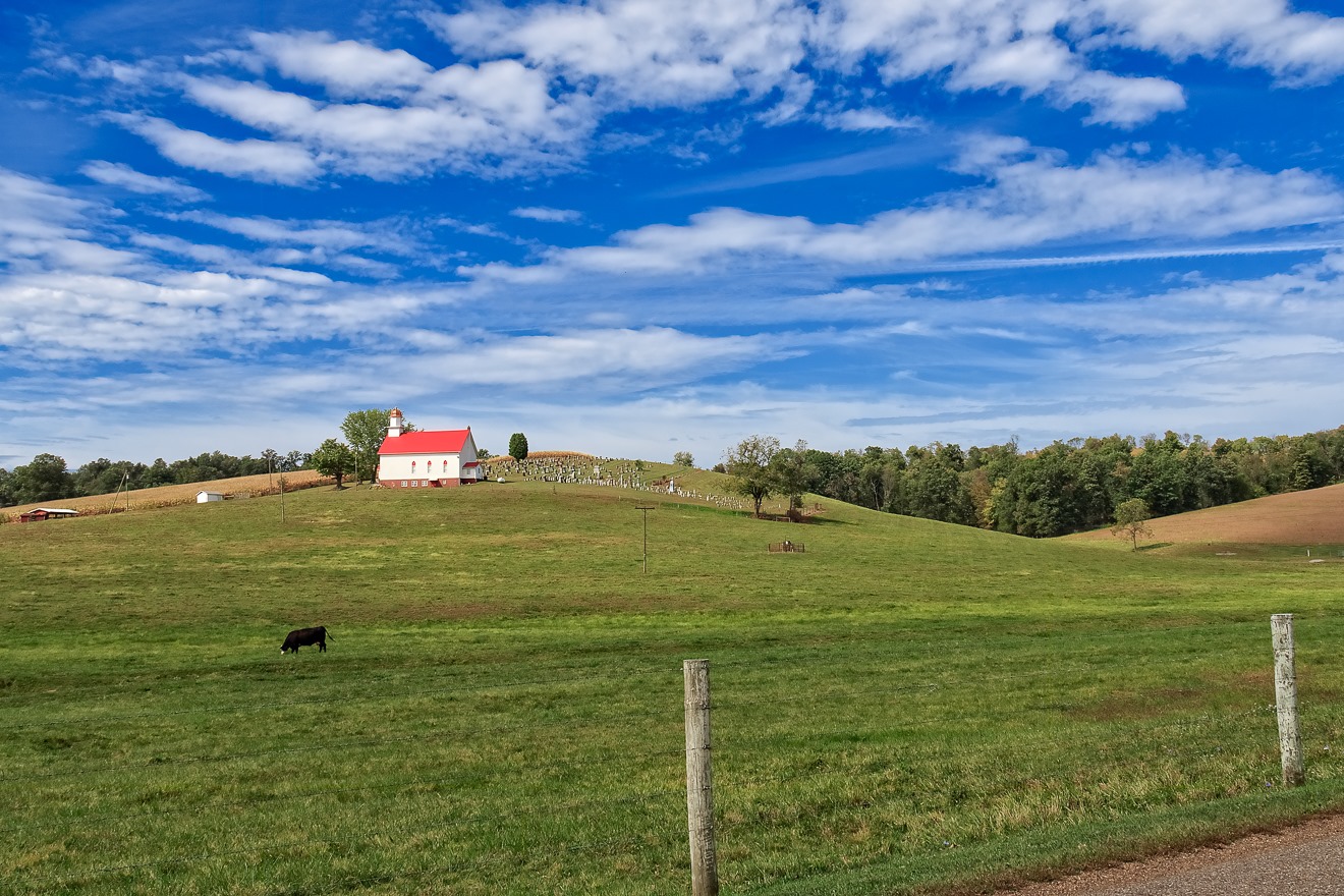 By now, edging into Tuscarawas County, perhaps I wasn’t in the middle of nowhere, but I wasn’t really somewhere, either. However, once upon a time, I might have been somewhere, because I was entering an area where there had once been a village—Fiat, Ohio—which was simply no more, not even a ghost town. One remnant of it which remains, though is the St. Peter’s United Church of Christ, a church and accompanying large cemetery that rest on a large but low hill overlooking the surrounding countryside. It is actually quite a beautiful scene.