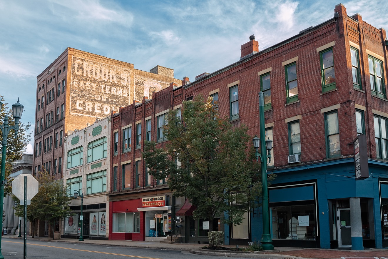 Still, there is no doubt that many of the buildings in East Liverpool are quite charming. This building is the J. C. Thompson Building, erected in the 1890s to house a variety of businesses. Upper floors later became apartment and hotel rooms. The building now has an odd, new chapter to its history. It was bought in 2013 by Sara Muschweck, who allegedly “cashed her retirement” to purchase it and is doing a low-budget restoration with money from giving tours to “paranormal investigators.”