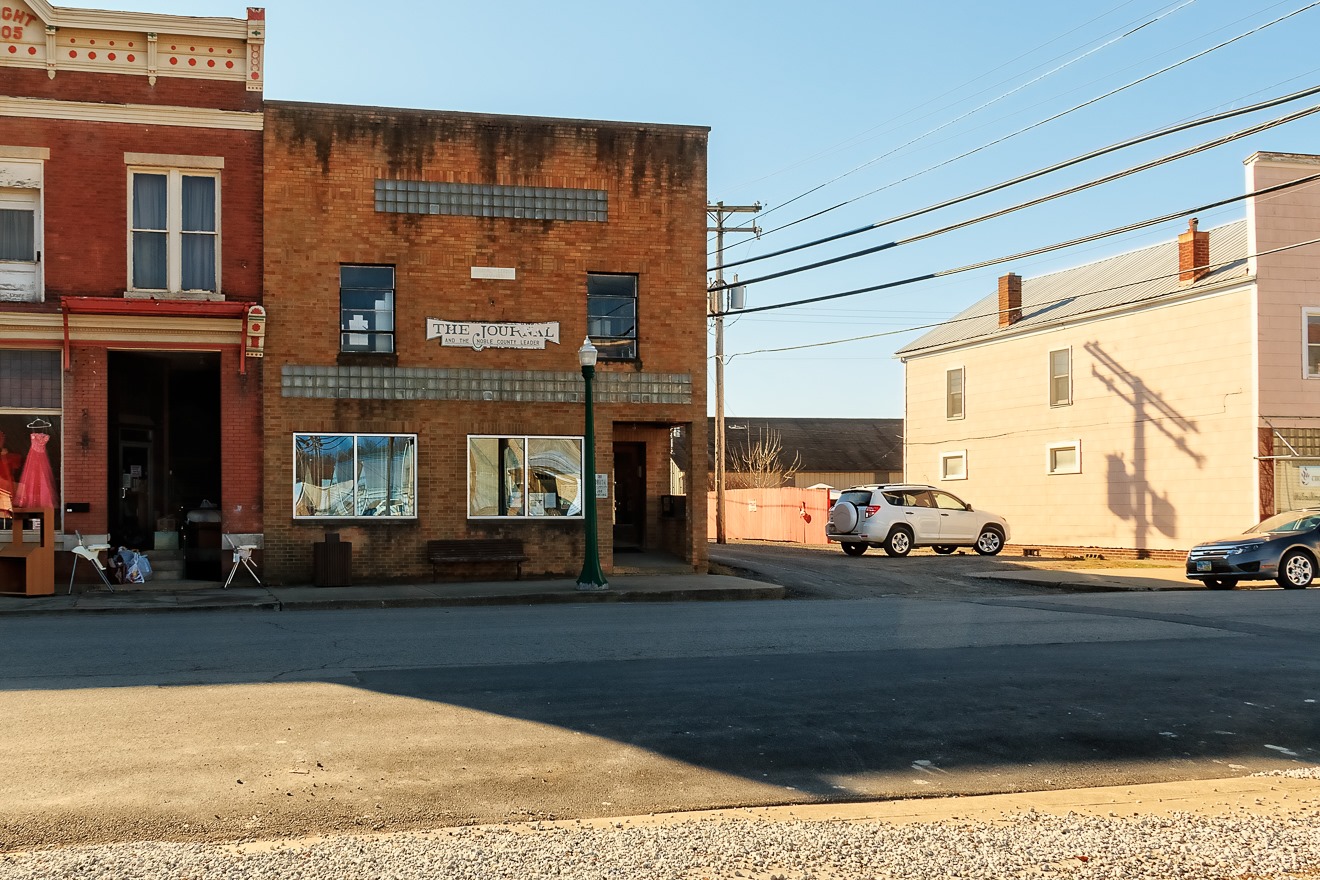 Here we see an interesting—to my mind—building, the building housing the village newspaper, The Journal and Noble County Leader.  Major newspapers are all suffering considerably thanks to the Internet, but I wonder how the smallest papers, in these tiny communities, fare?  A lot of village-scale newspapers also do other work, such as general printing—which may be the case here, as a sign suggests “Job Printing,” though that might be outdated.