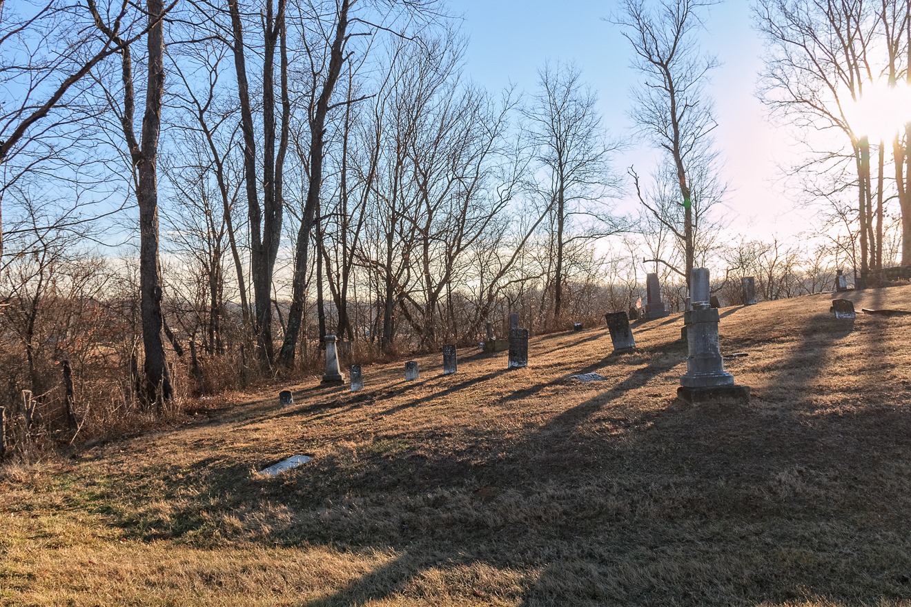 A number of hills in Ohio sport cemeteries.  This has interested me, because it would seem at first glance that many hills might not be very easy places for cemeteries (on the assumption that they would be rockier).  On the other hand, I suppose, hills were not suitable for many other endeavors, such as farming, and were thus more available for other purposes.  This particular photograph is part of a fairly large cemetery outside the hamlet of Chandlersville. In fact, I believe it is called Chandlersville Cemetery. The larger part of it on flatter land and this smaller portion across the street on a slope.