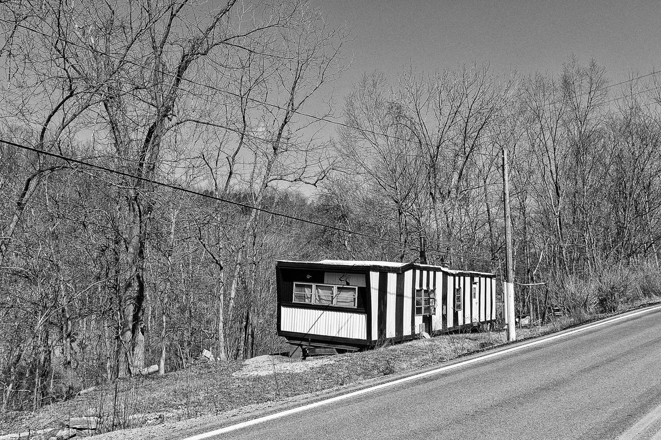 I continued driving east, through southern Ohio, coming across this very makeshift house in Scioto County. Scioto County is among the poorest counties in Ohio, and all the other poorest counties, except one, are its neighbors. The one exception is Holmes County, which is located in northeast Ohio and is the heart of Amish country in Ohio. I believe the large Amish population is the reason for this apparent discrepancy, as the region is fairly prosperous, with low unemployment. But the Amish have larger families and rely on barter and sharing to an unusual degree and thus in some respects take part less in the cash economy. For these and other reasons, statistics alone sometimes produce misleading results where high Amish populations are concerned. But I digress. Back to southern Ohio.