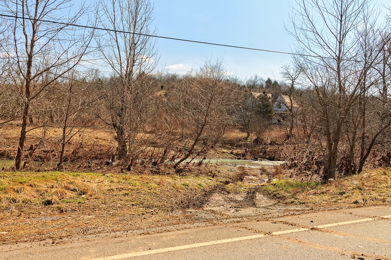 We can see from the muddy tracks that someone did recently cross the creek to get to the abandoned farmstead on the other side. Here the problem seems to be not necessarily the creek itself, but the soft and water-sogged ground between the creek and the road.