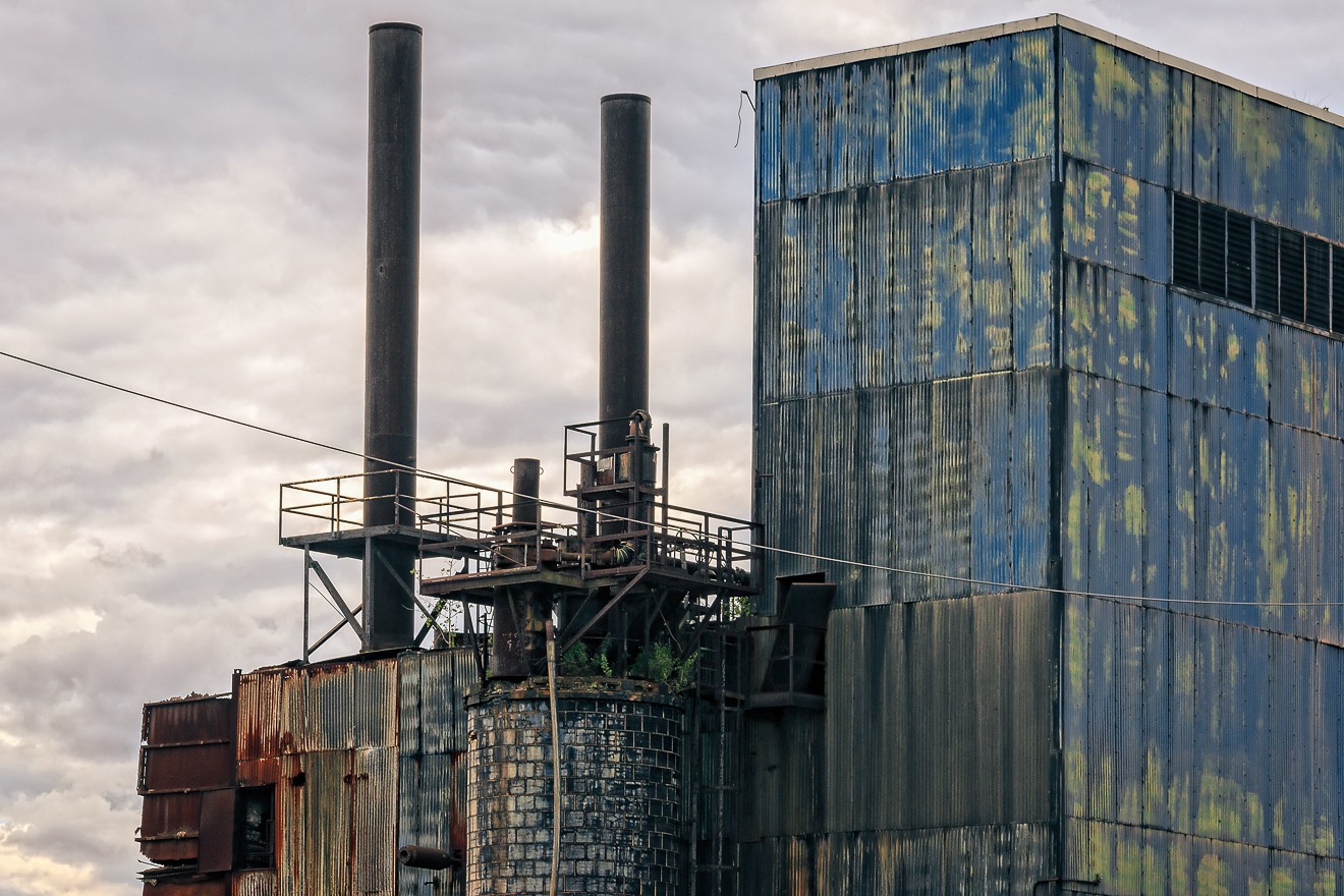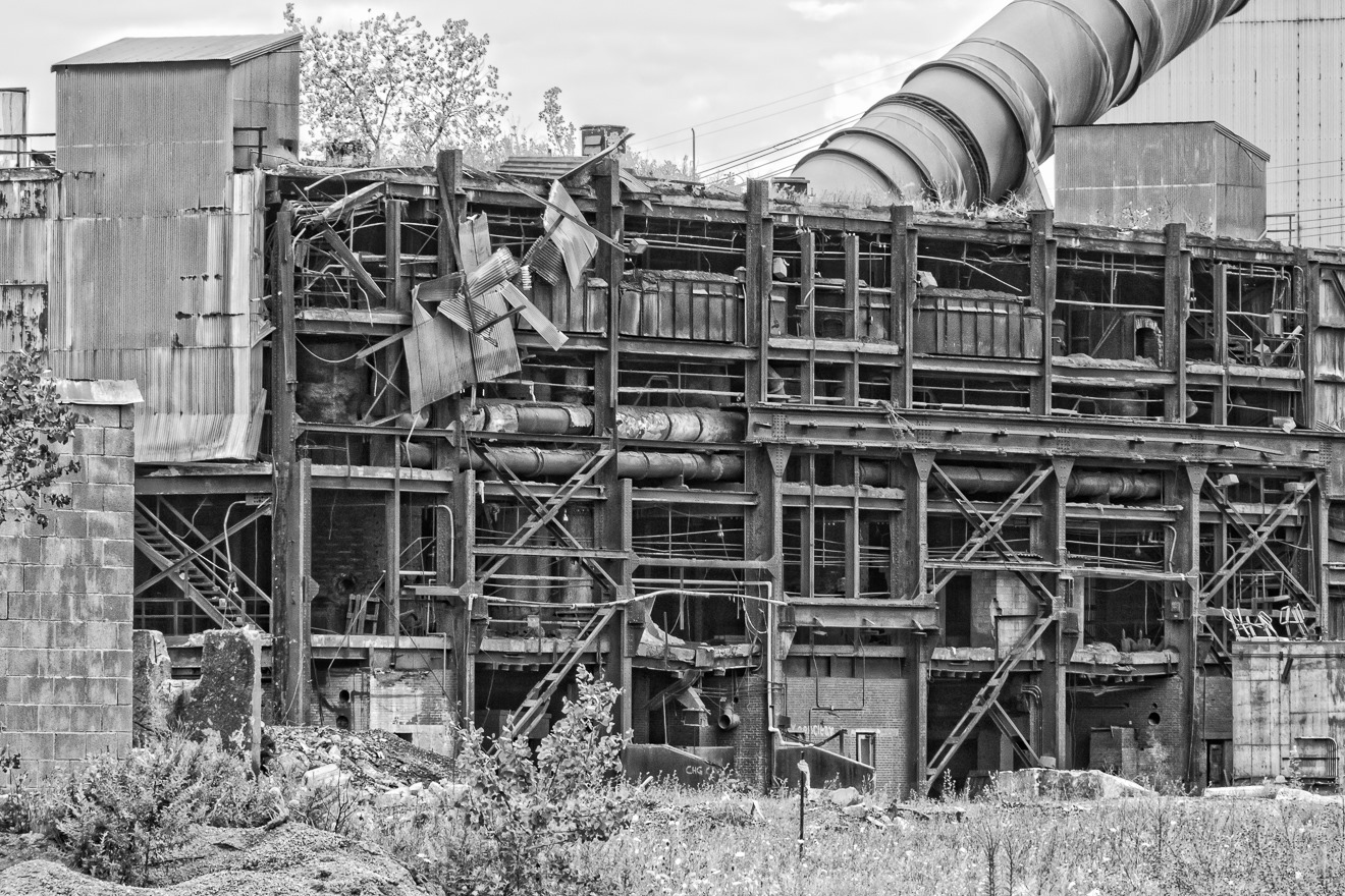 The somber, cloudy sky (which replaced a sunny sky from that morning) provides an appropriate cast to the scene of the abandoned steel mill. It looks as if it had been abandoned a lot longer than it has, though in all likelihood some parts of it were idle for much longer than others.