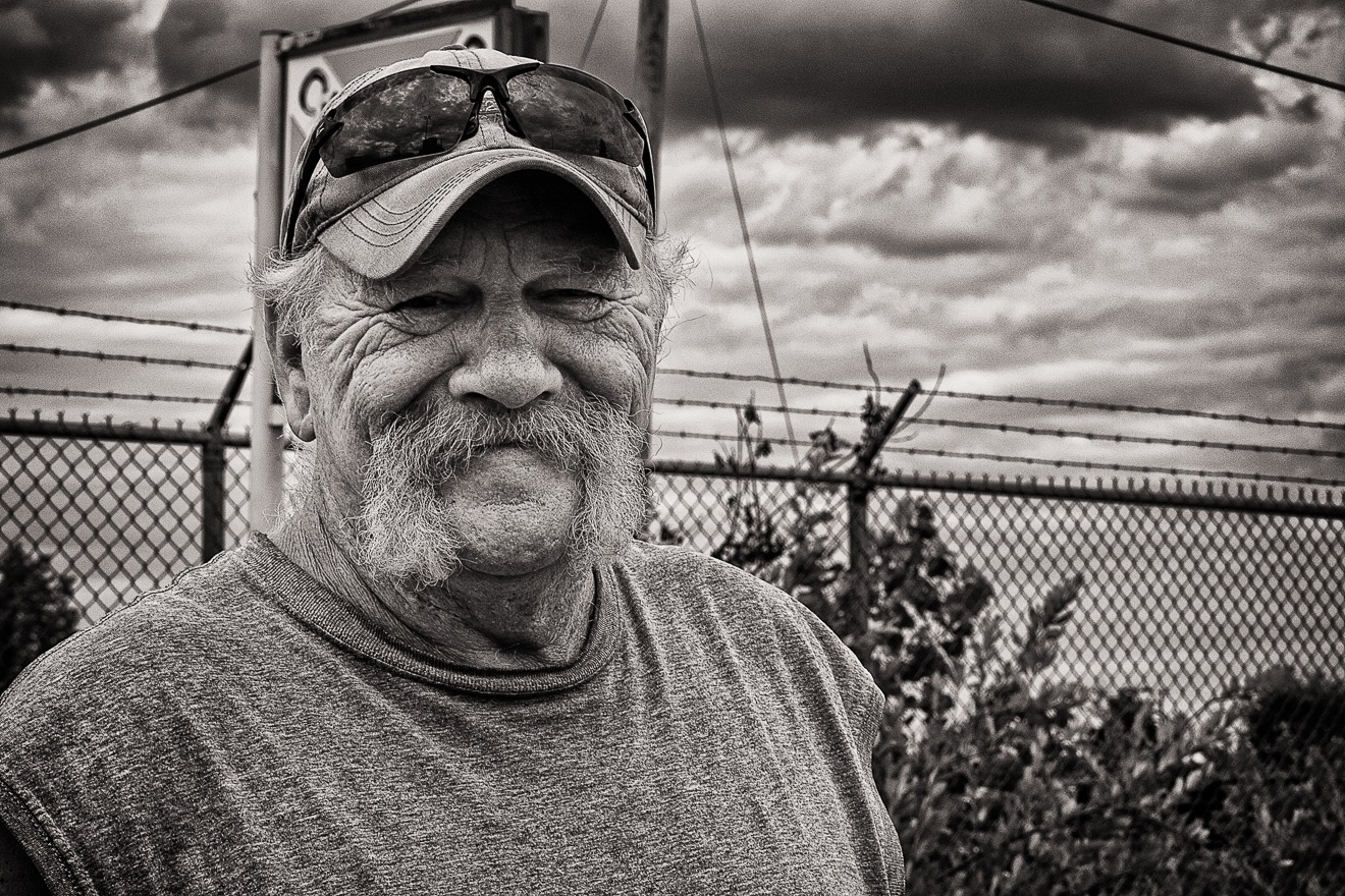 It seems a bit incongruous to switch to a photo of a human after so many photos of machinery and equipment, but when arrived at the property, I met one of the watchmen. I explained that I was taking photographs for my blog and asked him if I could drive a little bit past the “guardpost” to get a better view of the factory. He agreed, accompanying me to make sure I was not up to no good, and I got a chance to talk with him. He was someone who once worked at places like this, but now just looked after their remains. His distinctive, weathered face was, I thought, very appealing, so I asked him if he would be willing to let me take his photograph.