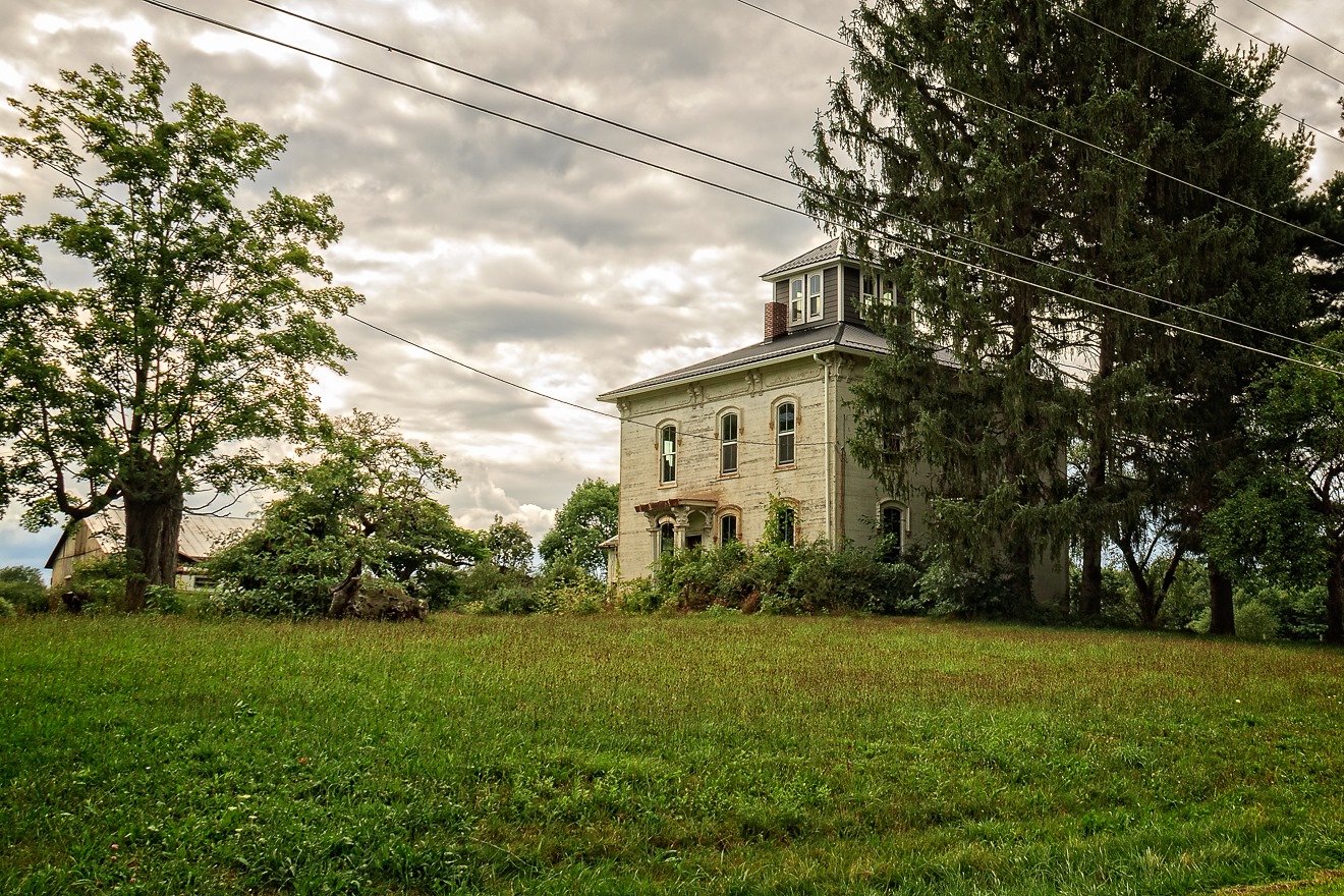 Somewhere in northeastern Ohio, I found this interesting abandoned farmhouse. What I love about it is the odd room that serves as a third floor. It seems too small for anything functional, so was its purpose purely decorative? It is a good lookout post, in any case.