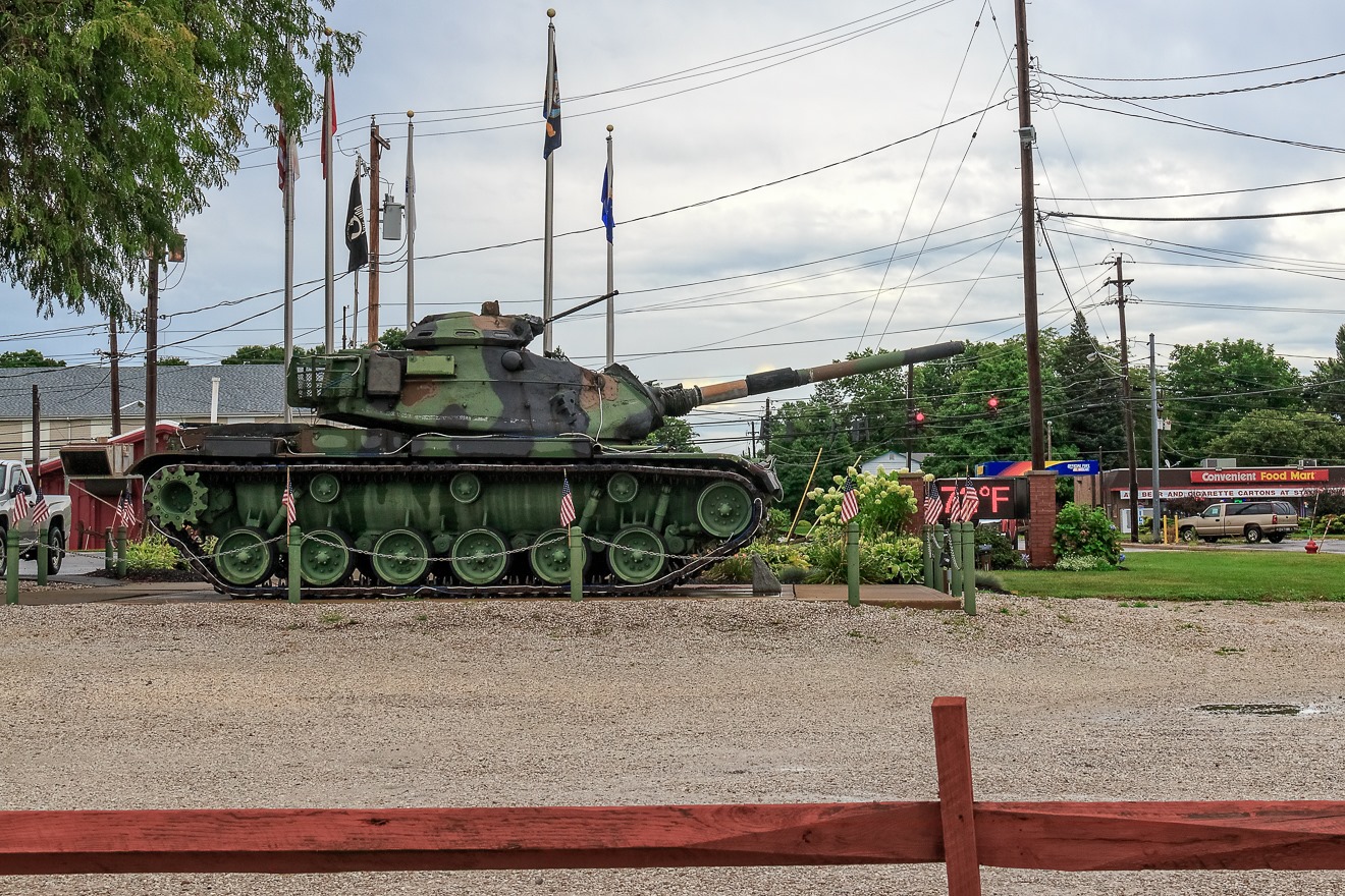 I will end this excursion—a wonderful day—with a bit of a mystery. Here is a Patton tank, probably an M60, which was situated on the property of a VFW or American Legion Hall. But which one, I do not know, in the absence of the GPS, although it seems likely to have been in some town near Lake Erie. Alas!