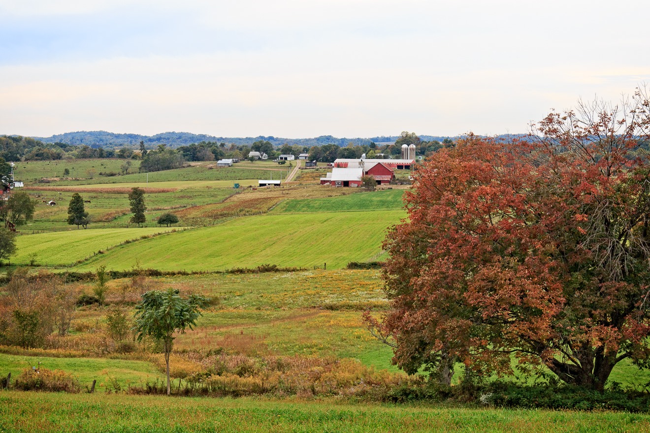 Here’s a very representative shot of the countryside—that mixture of farmland, hills, and woods.