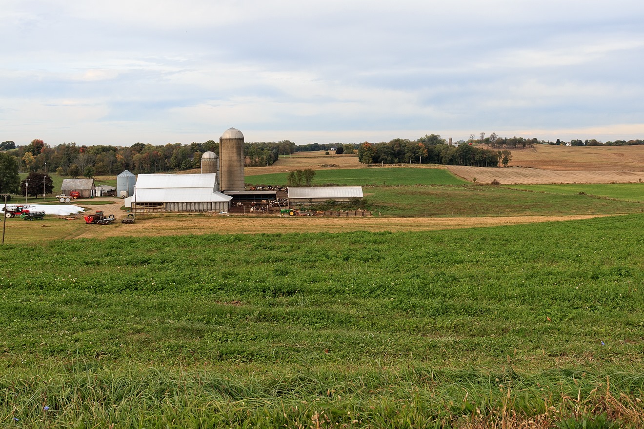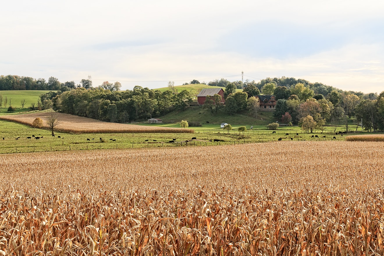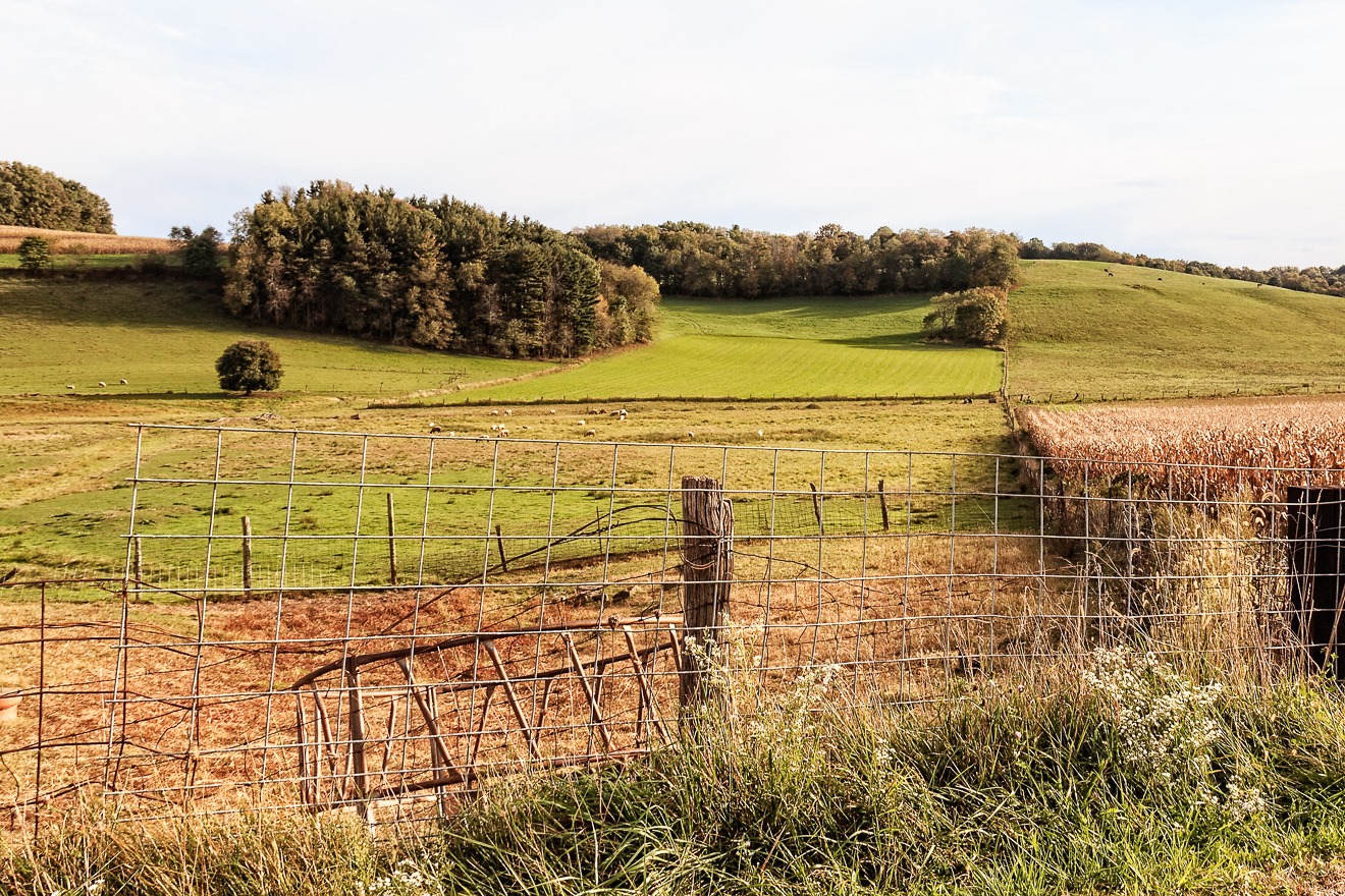 Farmland and pastureland in northeastern Ohio. A juncture of four distinct fields.