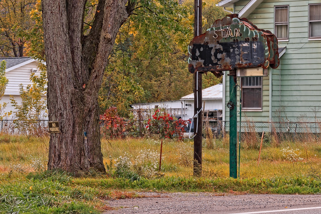 As we headed eastward out of Minerva, however, I found an even more interesting (to me!) site than the Roxy. Out of the corner of my eye, I caught this sign. It dawned on me that I had seen an old motel sign—a sign for a building called the Star Motel.