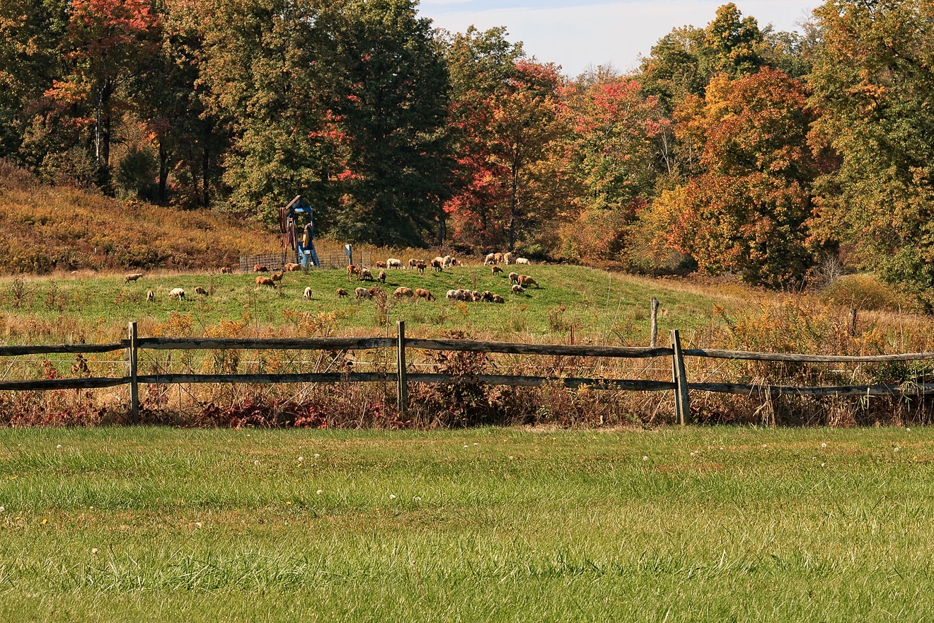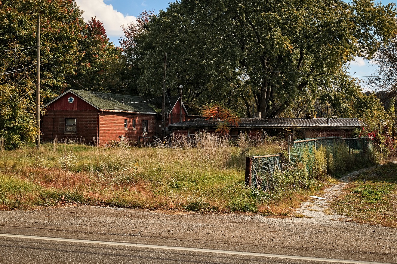 I thought I’d start by showing a hint of fall foliage and an example of something that I see from time to time in rural Ohio. Here we have an example of what used to be a house and yard that is now simply a pasture. Nobody bothered to get rid of the old house; they just fenced it in and put old Bessie and her friends inside the new enclosure. This photo was taken near the Muskingum River a little north of Dresden, Ohio.