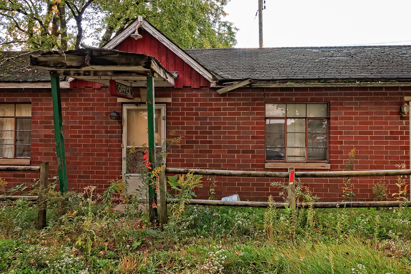The place looks like it has been abandoned forever, but in fact it had a sort of life not all that long ago. Its end stage, which is the case for many such places, was to be converted to low-rent apartments and it was still renting them as recently as 2005. Based on information about the property on an auction site, it was converted into four apartments, which suggests how tiny this motel had been.