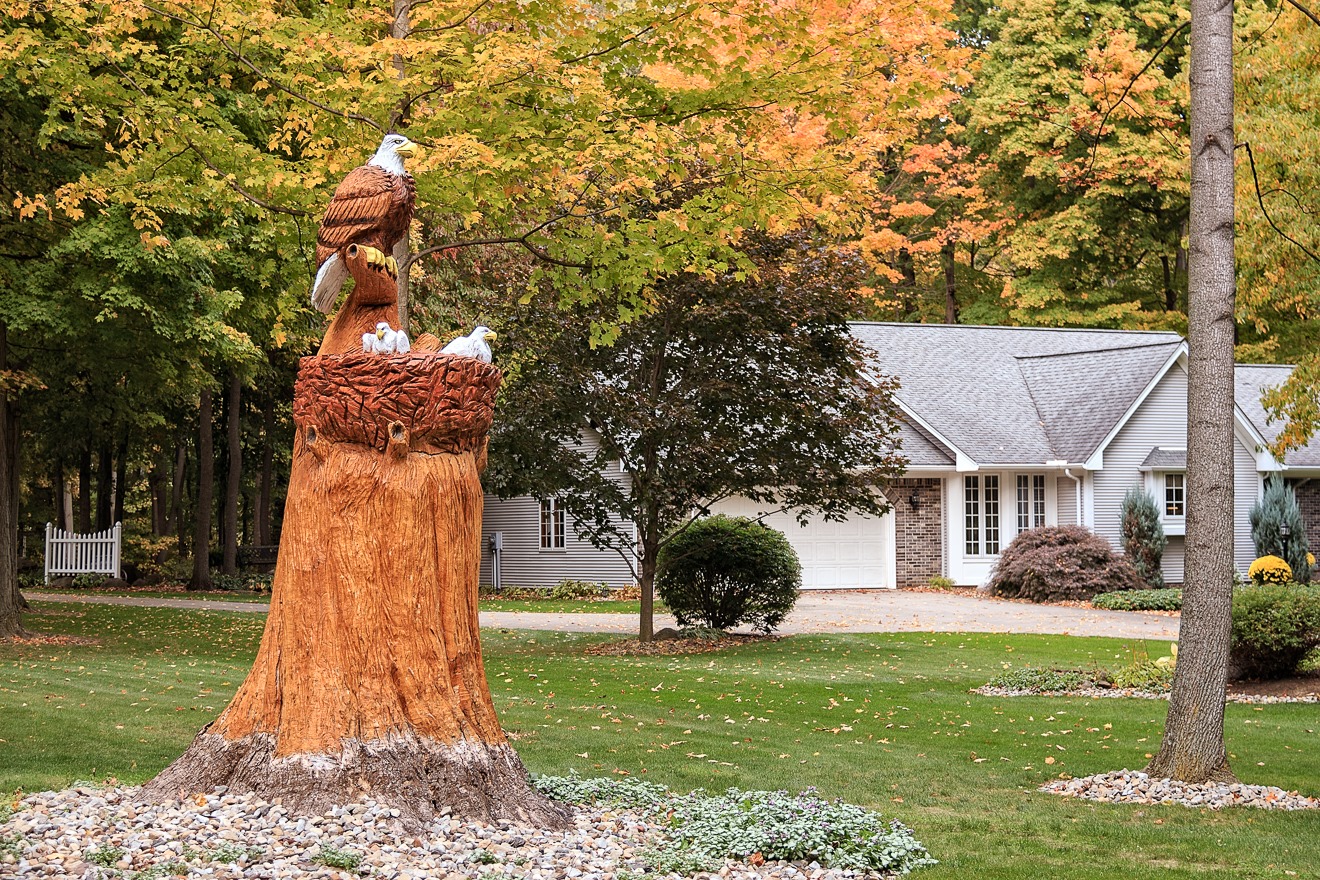 I never knew that tree sculptures were even a thing before I moved to Ohio and saw artists at work with chain saws and other tools. This eyrie is northeast of Salem.