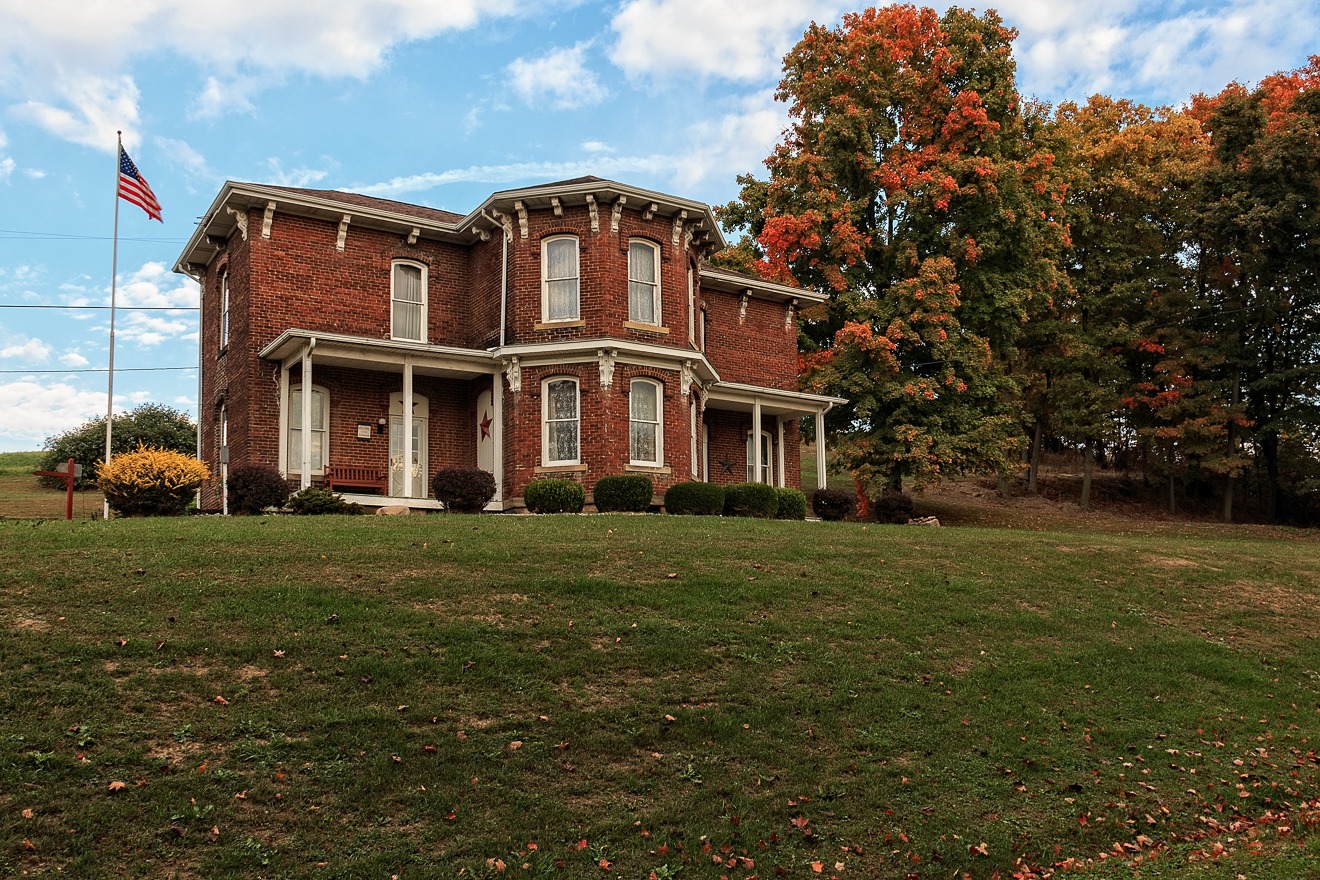 More or less following the west side of the Muskingum River towards the north and east, I came across this stately old manor just outside the hamlet of Conesville (population 347, salute!). Conesville, which even a century ago was described as “merely a railroad station with a country store attached,” got its name from Beebe S. Cone, who built a distillery there. Today, Conesville is very much dominated by AEP’s Conesville Power Plant, a large coal-burning power plant across the Muskingum. Its tall stacks can be seen for miles around.