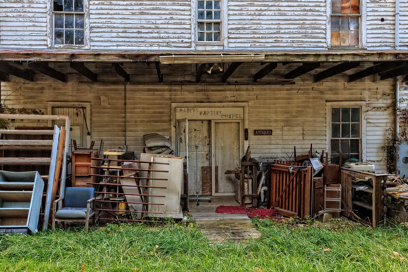 The Tuscarawas River is a tributary of the Muskingum River and as we turned east, we paralleled it. Further up the river are the villages of Port Washington and Gnadenutten (the latter of which I wrote about in the previous blog). Port Washington, with a population of only 569 (salute!) is considerably the smaller of the two. Between the two communities I found the above derelict building, with a sign on the door that reads “Charity Baptist Chapel.” I discovered through Google that there is indeed a Charity Baptist Chapel in the area, but it is some distance away. Was this a former site for the church? The building, with an additional sign that reads “antiques,” actually suggests that it might have been a couple “former” things. It’s a minor mystery.