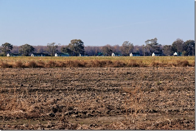 Across another field, I could s see yet more similarly constructed buildings that were likely another set of dwellings for migrant labor.