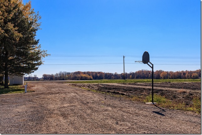 But if it was a camp, it was a pretty thread-bare camp.  It did have this lonely basketball pole, hardly inviting. More interestingly, in the field behind the building a soccer field had been marked out.  It was slightly mysterious. But there was nothing intrinsically visually interesting about it, so I took no photographs and left (I later drove back and took these photos, once I realized what I had seen).