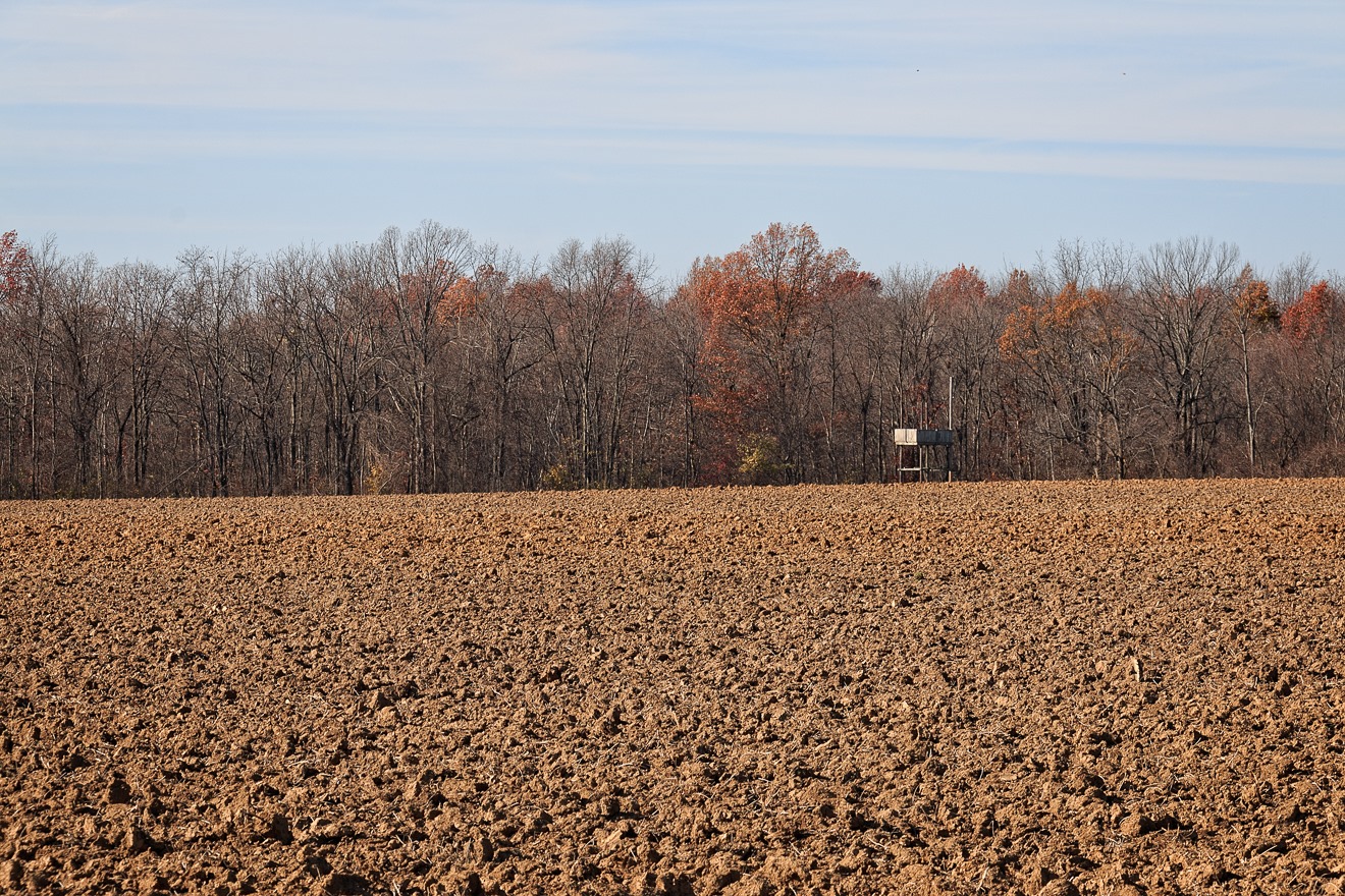 Although this whole region was once primeval forest, most of it has long since been cleared for farmland. Still, there are many patches and stretches of woods. Here someone has erected a deer stand to be able to spot (and kill) deer coming out into the open to nosh.