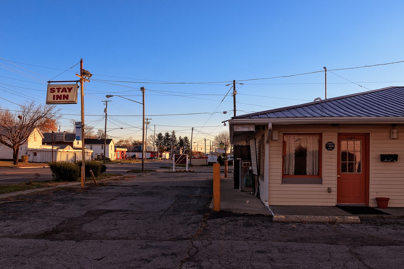 As I headed south, I found myself in Marion, Ohio. I was no longer really in the photo-taking mindframe by this point in time; more in the get-home-and-put-a-frozen-pizza-in-the-oven mindframe, but I made an exception for this sign for the “Stay Inn.” Perhaps it’s just best to say that Internet reviews of this establishment are not very kind to it.